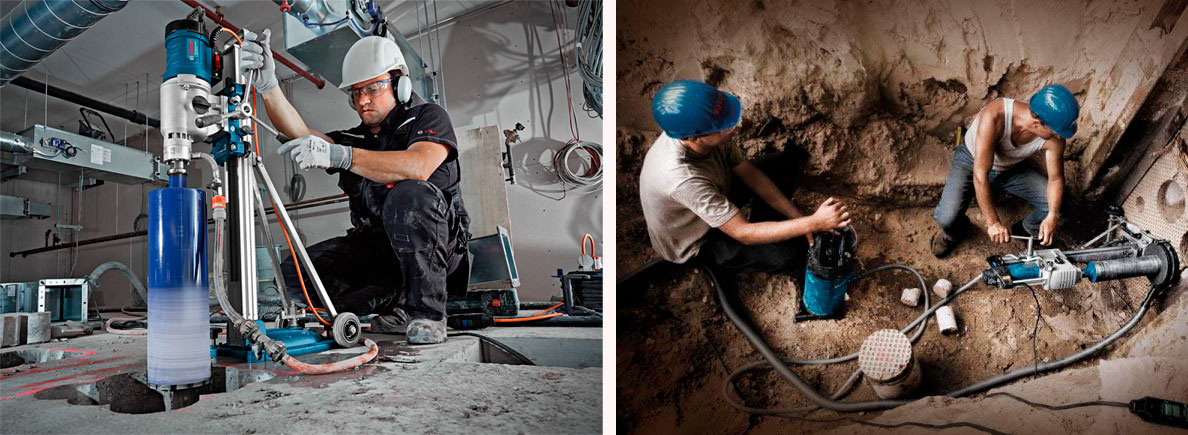 Говоря о стройке, нужно уточнить, что применять дрель для алмазного бурения в ней стали совсем недавно. Задачи, которые ложатся на алмазную коронку при ремонтной работе: