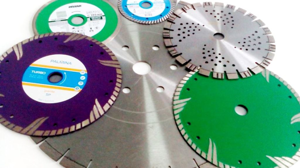 Диск представляет собой круг из металла с небольшой толщиной, на его кромках расположены режущие алмазные пластины. Они сделаны из промышленных молотых алмазов, впрессованных в связующее вещество: