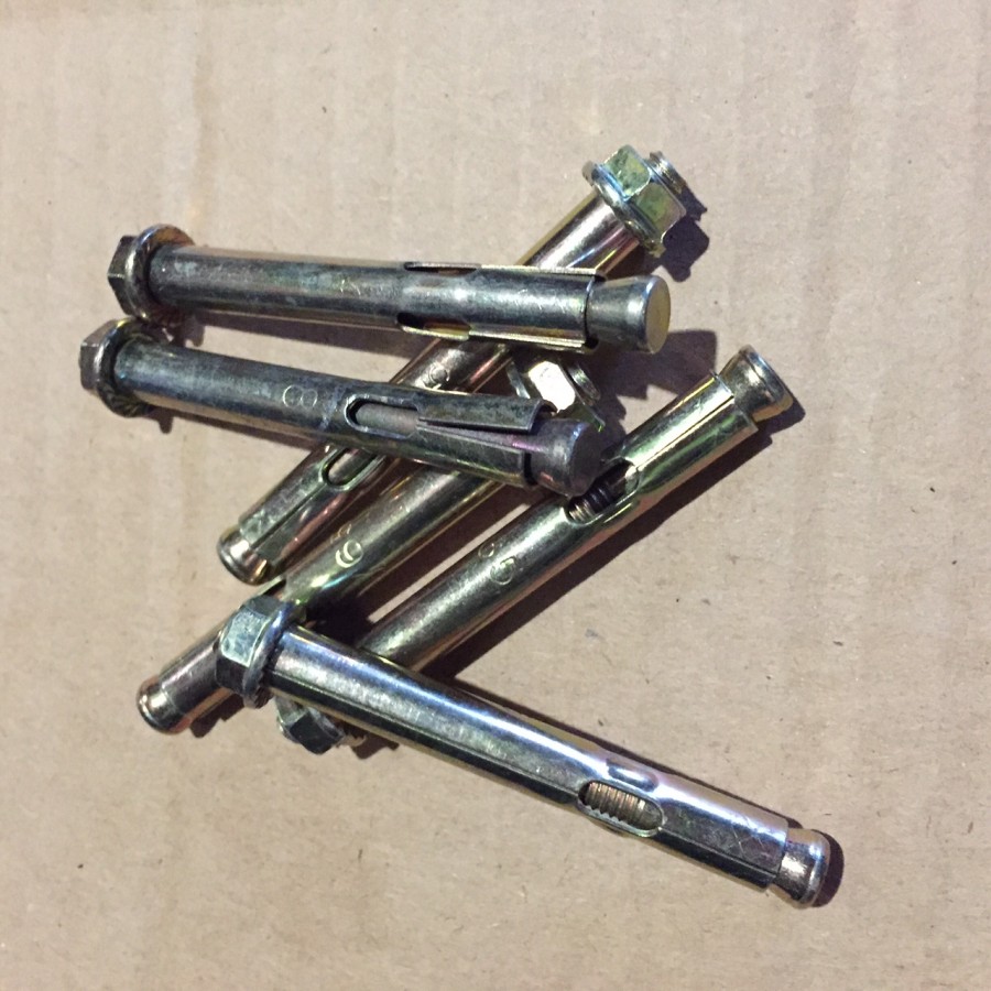 Забиваемый. Вместо клина используется специальная форма краёв гильзы, выполненной из мягкого металла. При забивании болта края, упираясь в дно отверстия, деформируются и надёжно удерживают самый простой вид подобного крепежа. Но для его надёжной фиксации необходимо выполнять точное сверление отверстия по диаметру и глубине.