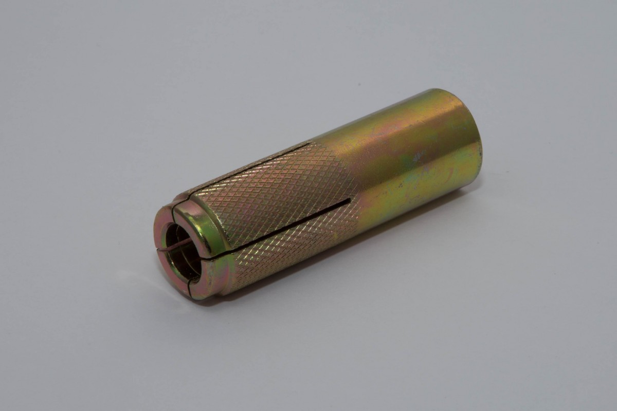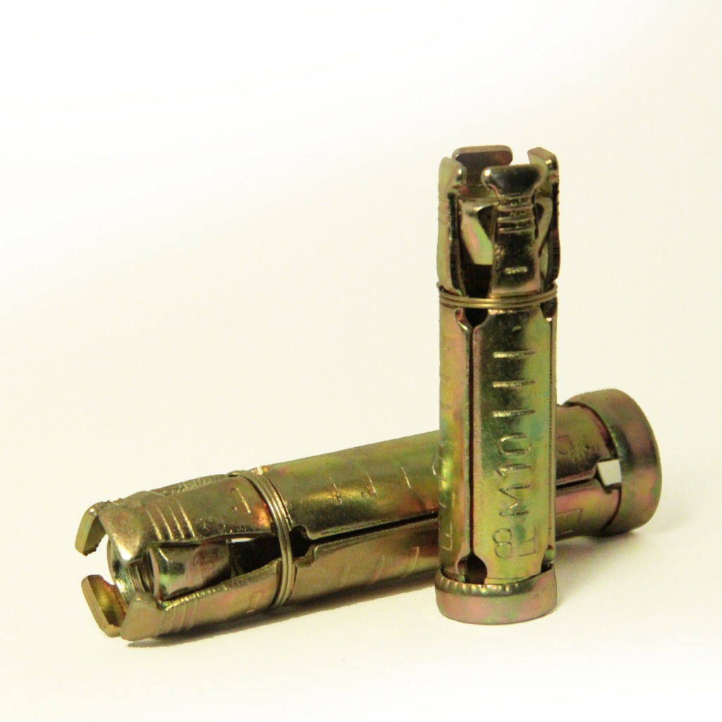 Простейший вид распорного крепежа, представляющий собой стержень (болт) с конусообразным концом, гильзой с четырьмя вырезами и гайкой. Гайка выступает в роли фиксатора — с ее помощью конструкция фиксируется в заранее высверленном посадочном отверстии, диаметр которого равен диаметру гильзы. После вбивания стержня в отверстие гайка поворачивается по часовой стрелке, тем самым двигая стержень наружу. Конусовидный конец шпильки распирает гильзу в районе вырезов, тем самым закрепляя конструкцию в отверстии.