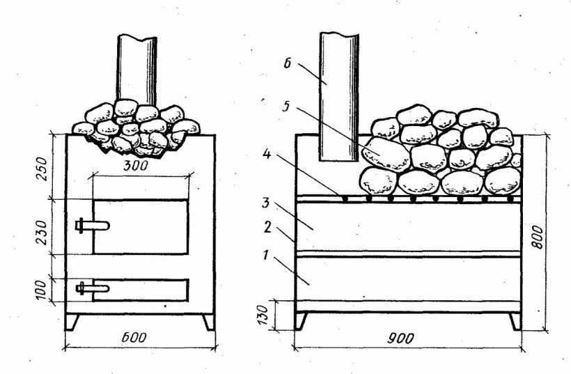 Несмотря на то, что принцип работы печки-каменки из металла достаточно простой, в готовом виде они стоят очень дорого. Именно поэтому гораздо дешевле обойдется собрать ее простейшую модель самостоятельно на основании чертежей конструкции. При желании каменку можно оборудовать баком для разогревания воды.
