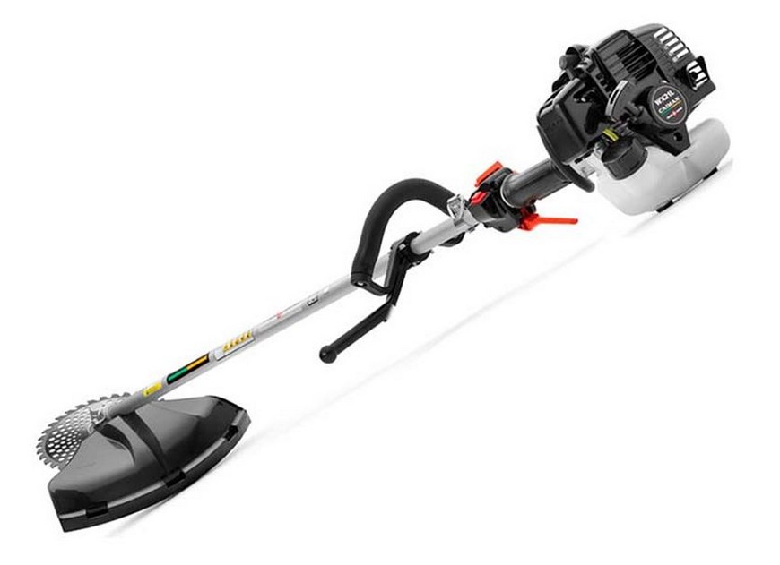 Оснащен мощным четырехтактным двигателем в 5 л.с. при весе 32,1 кг. При этом уровень шума очень низкий и почти не чувствуется вибрация при работе. Ширина скашивания лески 59,9 см, высота скоса регулируется по ситуации, что позволяет уничтожать камыш или, к примеру, борщевик.