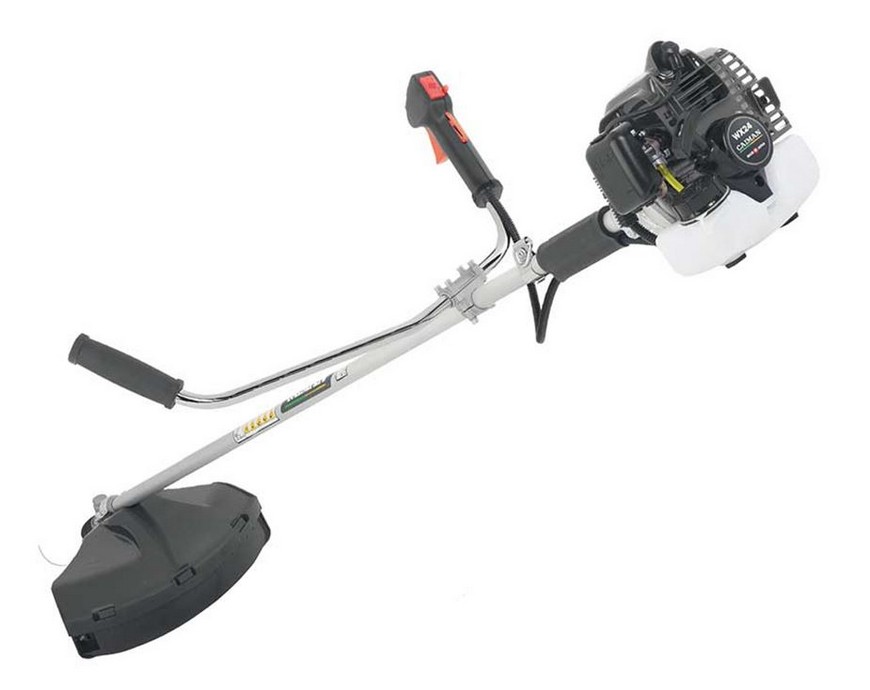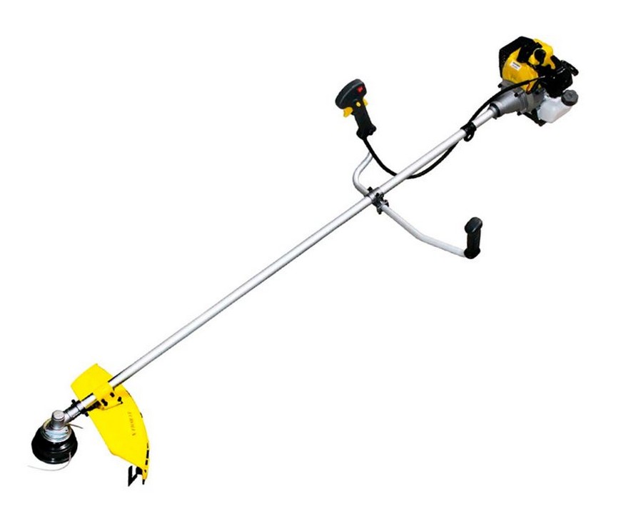 Модель можно оснащать диском на 23 см и леской диаметром 3 мм. Антивибрационная система и резиновые буфера снижают уровень вибрации. Модель комплектуется сдвоенным наплечным ремнем и защитными очками.