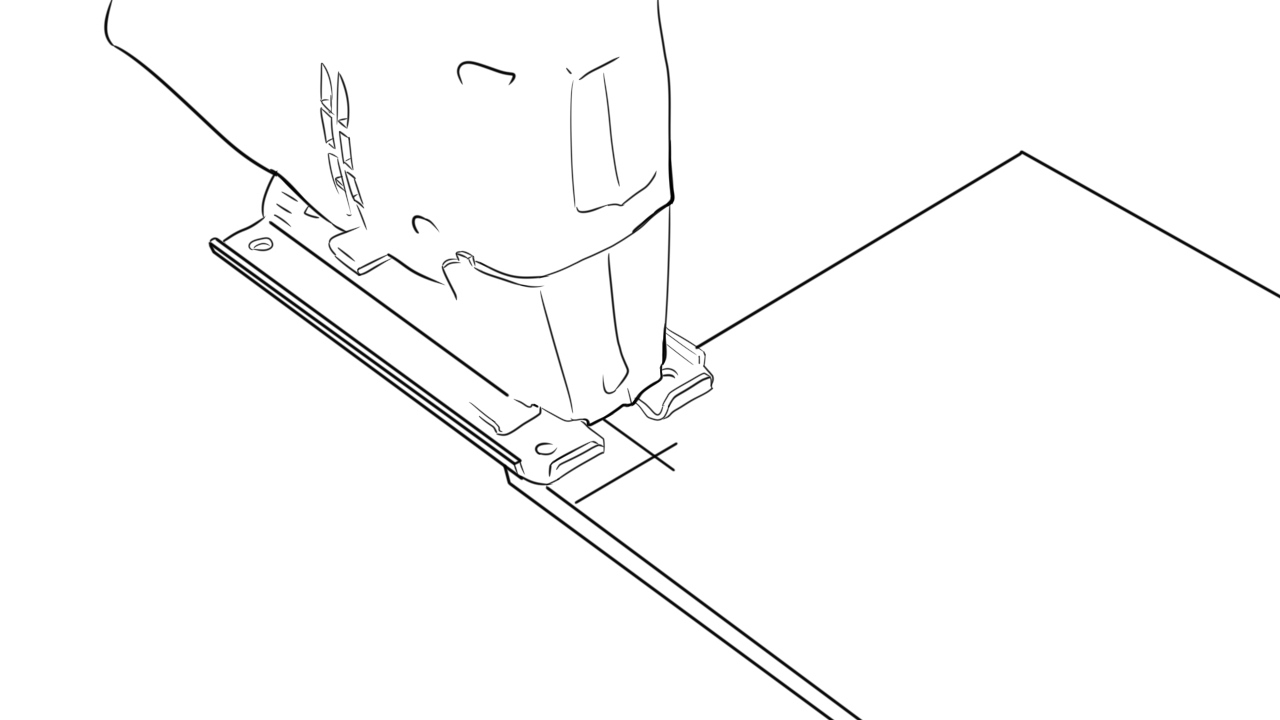 - Укладываем плитку на станину так, чтобы отчерченная линия совпадала с продольным выступом на основании.