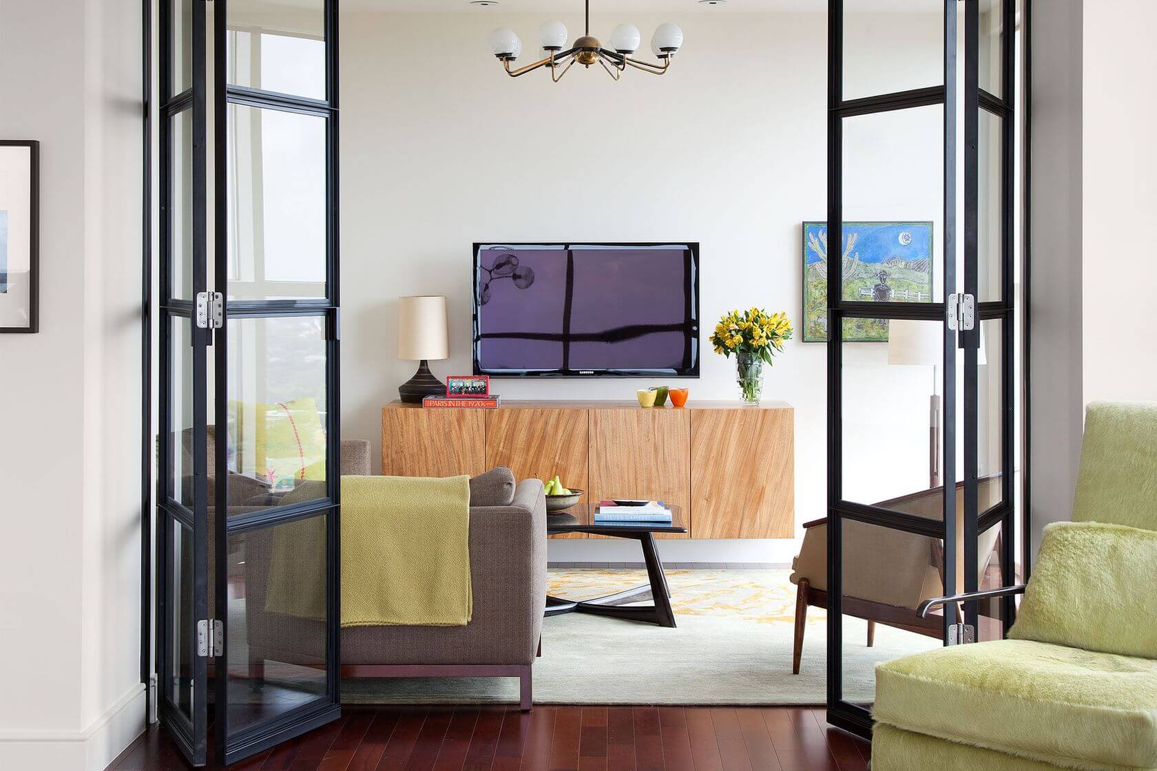 При установке распашных дверей следует обратить внимание на то, достаточно ли места для их открытия. Такие конструкции дверей отлично подходят для гостиных и других комнат