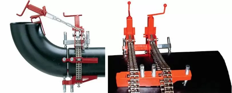- цепные. Вокруг стыка с помощью специальных натяжных закрепляется цепь, которая и фиксирует отрезки для сварки;
