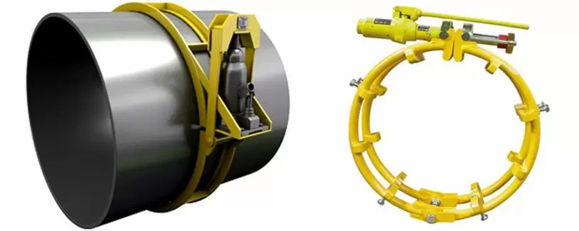 Если внутренние механизмы могут работать только за счет гидравлических насосов, то наружные можно подразделить еще на несколько категорий по способу крепления на стыках труб ППУ или любых других изделий большого и малого диаметра.