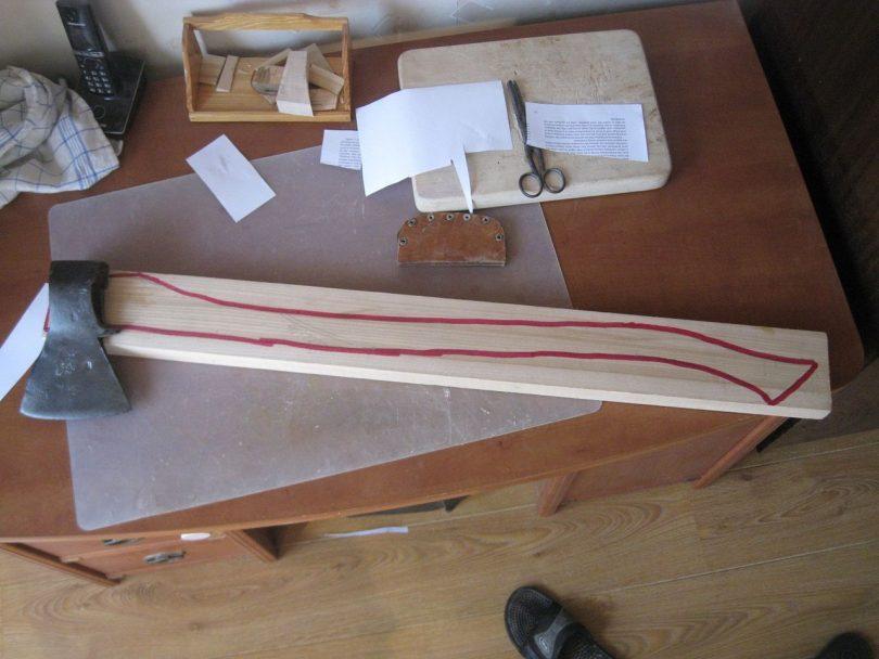 Чаще всего в основе шаблонов – берёза. 80 см – необходимая длина, чтобы выточить рукоять. Ширина обхвата дерева варьируется в пределах 40 – 60 см. При меньшем значении волокна будут ненадёжными и рукоять быстро поломается. При слишком широком стволе можно получить трухлявый материал.