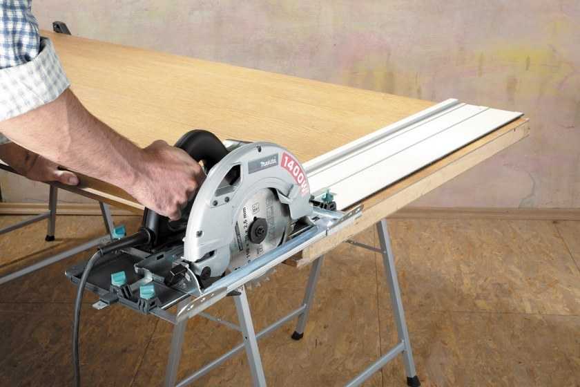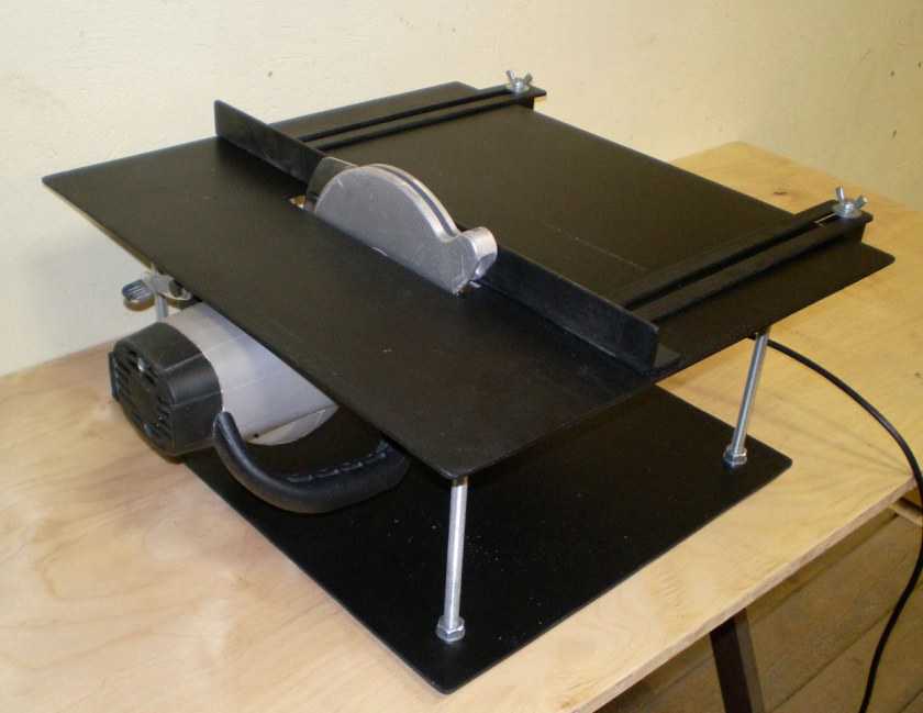 В качестве подставки (столешницы) циркулярки идеально подойдет часть корпуса старого телевизора, ДСП с покрытием. Как показывает практика, данная деталь отличается достаточной прочностью, а благодаря лаковому покрытию не препятствует скольжению обрабатываемой заготовки.