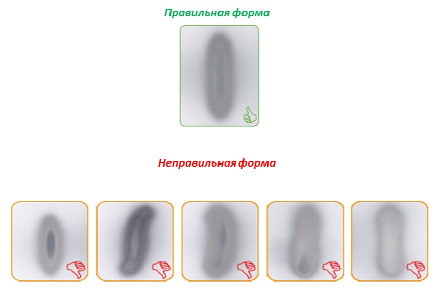 | Рис. 5. Правильная и неправильные формы факела краскопульта |