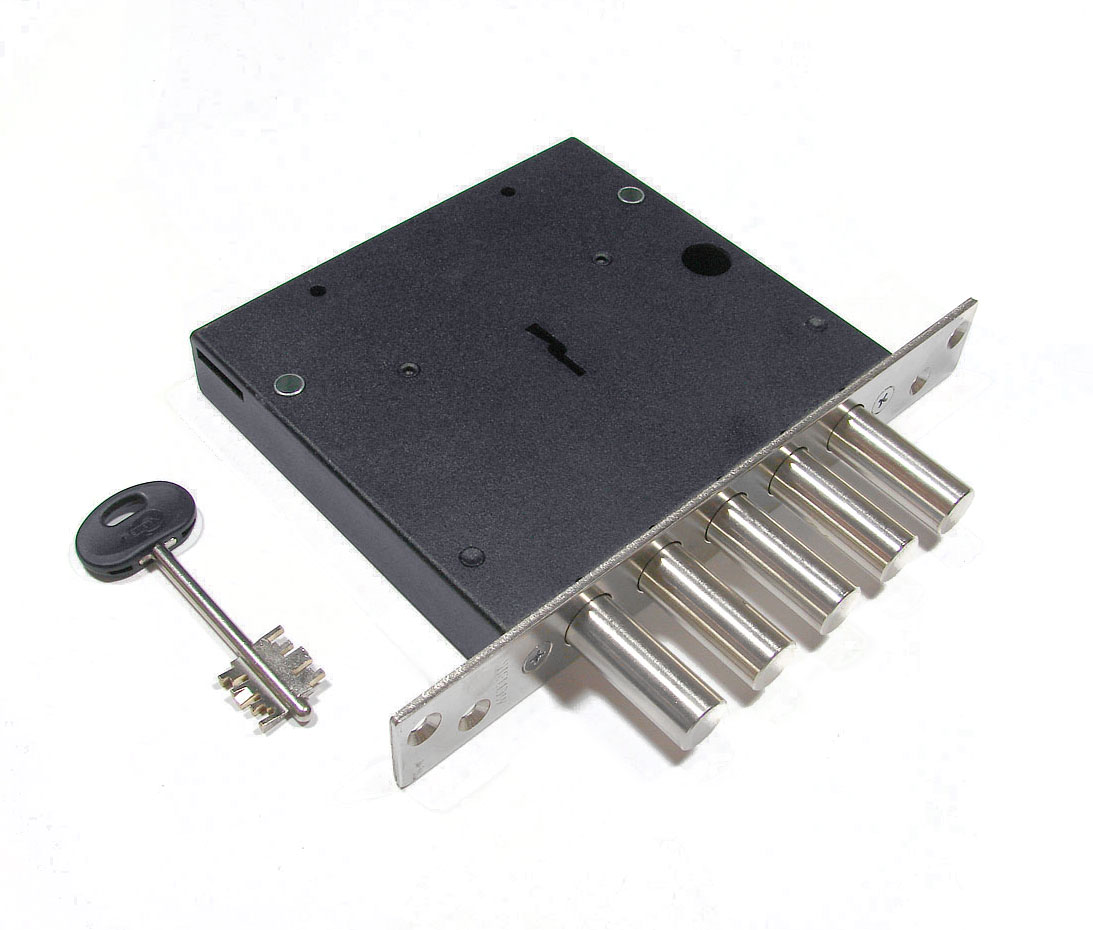 Механические. Наиболее распространенные и востребованные. Они открываются механическим способом с помощью ключа, к которому прикладывается усилие, чтобы воздействовать на запирающую систему. Конструкция состоит из корпуса с запорной и ответной планкой, сувальд или цилиндров и ригеля из прочной закаленной стали, которые выдвигаются в горизонтальном направлении. Надежность и безопасность запирающего устройства связана с конструктивом сувальд и цилиндров. Ключи имеют небольшие размеры, но легко приводят в действие даже массивные механизмы.