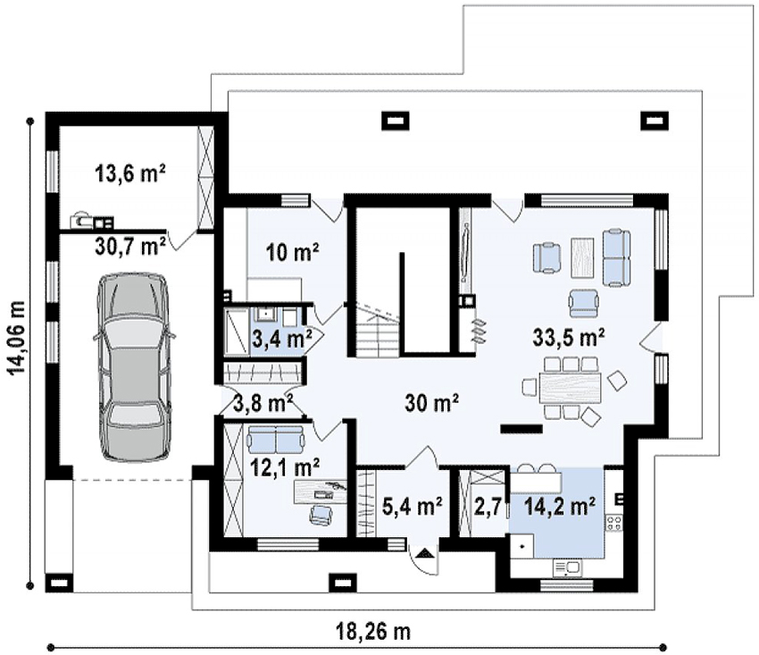 кровли. Проектанты предпочитают планировать террасу, поскольку она безупречно