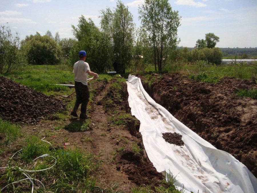 - на дно траншеи укладываем геотекстиль;