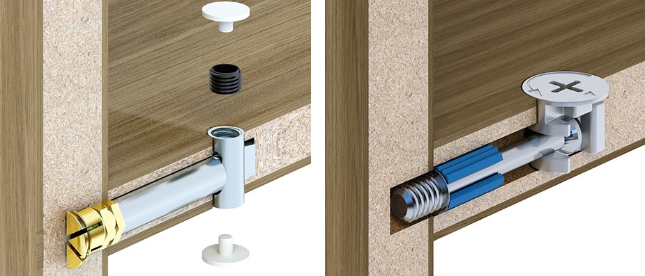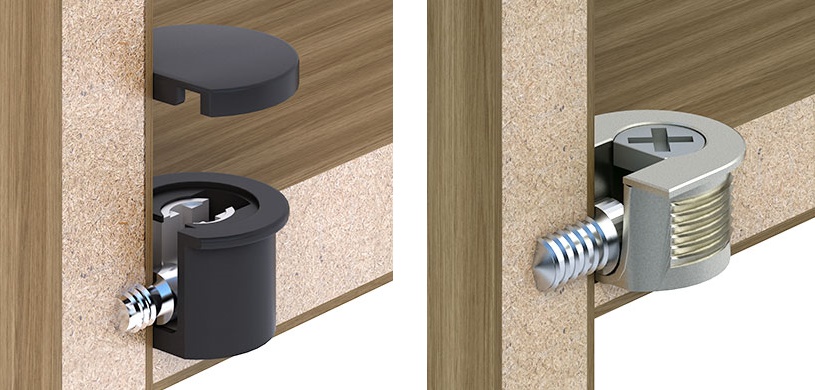 Прочность и незаметность деталей обеспечивает поворот цилиндра вокруг его оси. На видимых поверхностях эксцентрики больших размеров закрывают заглушками, а вот закрывать цилиндры с диаметром меньше 15 мм – не обязательно.