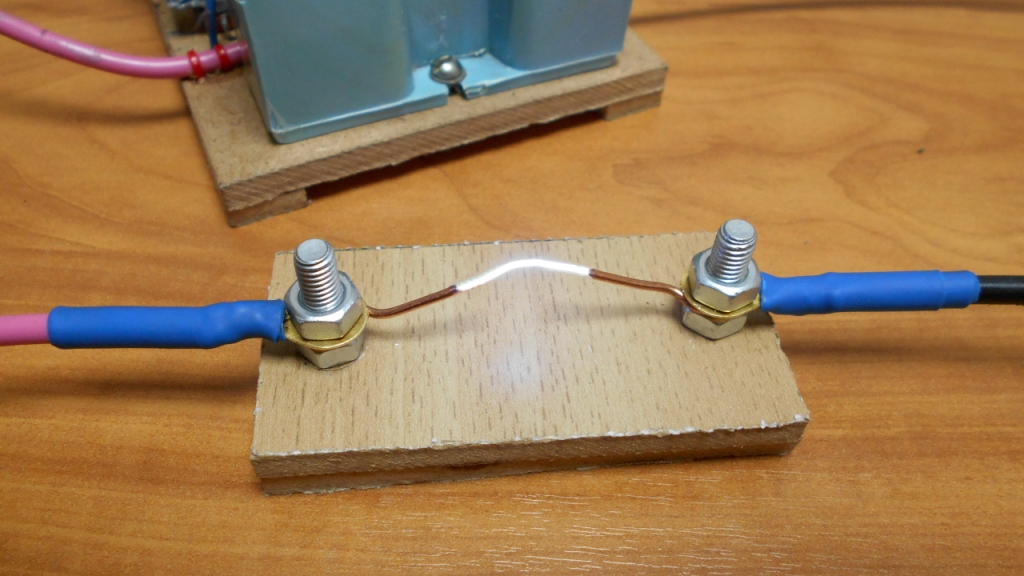 В зависимости от схемы генератора станка, в нем используются весьма опасные токи величиной 1-30А при напряжении 220 В. Изоляция всех токопроводящих частей должна быть исключительно надежной. Как работает самодельный станок можно посмотреть на видео, или здесь.