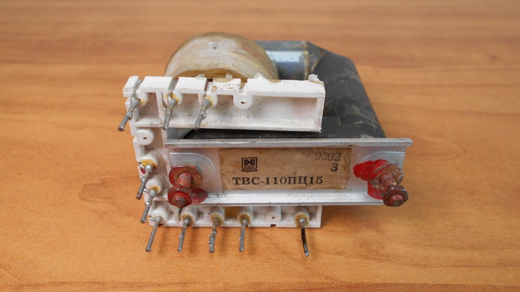 Самой важной деталью генератора является строчный трансформатор ТВС-110ПЦ15, возможно использовать ТВС-90ЛЦ5 и другие аналогичные от старых цветных, черно белых и даже ламповых телевизоров