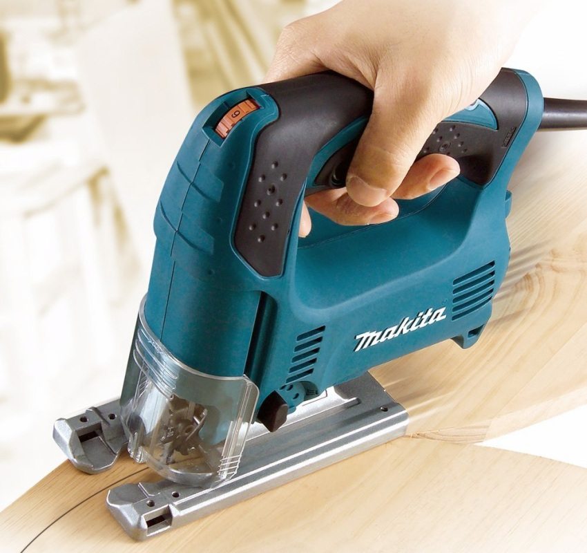 Электролобзик Макита отличает от других моделей минимальная вибрация. После использования этой модели вам не захочется брать в руки другой лобзик. Из других плюсов стоит отметить наличие трех режимов маятникового хода, прорезиненную ручку и возможность регулировки базовой плоскости. Минус инструмента – длительная замена полотна.