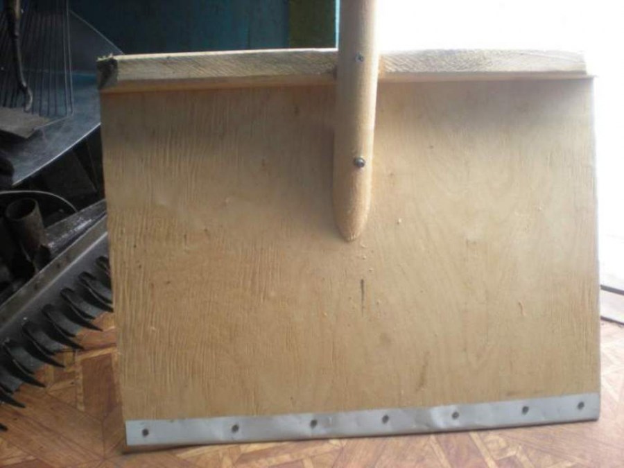 Это наиболее простой и дешевый вариант. Такая лопата легко делается своими руками. В качестве ковша используют фанеру, которая недорогая по стоимости. Ее можно использовать в том случае, если зимы у вас в регионе непродолжительные и малоснежные. Покупка дорогой модели будет нерентабельной. А для ликвидации редко возникающих сугробов такой простой вариант достаточен.