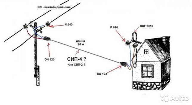 Схема подводки СИП кабеля