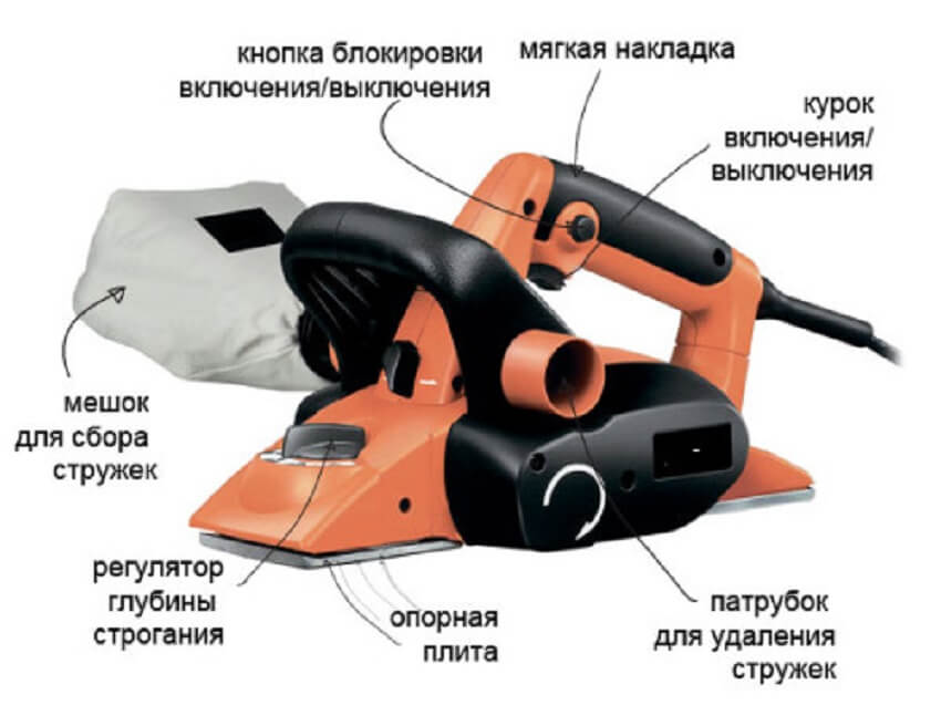 - Рукоятка – элемент для удержания инструмента в руках при работе (как правило, на электрорубанках две рукоятки – для правой и левой рук).