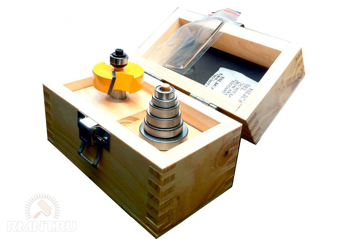 Очень часто можно встретить фрезы, которые оснащены маленьким подшипником, вмонтированным заподлицо с лезвиями сверху или снизу. Подшипник обеспечивает при минимальных затратах времени выполнение точного фрезерования края, потому что нет необходимости возиться с упорами для ровного ведения инструмента: подшипник сам упирается в «ребро» заготовки и, следовательно, создает точное направление для фрезера.