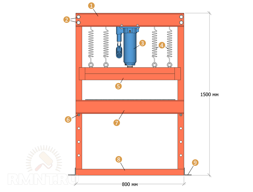 Размеры и необходимый объем металлопроката подбирайте в соответствии со своим чертежом гидравлического пресса.