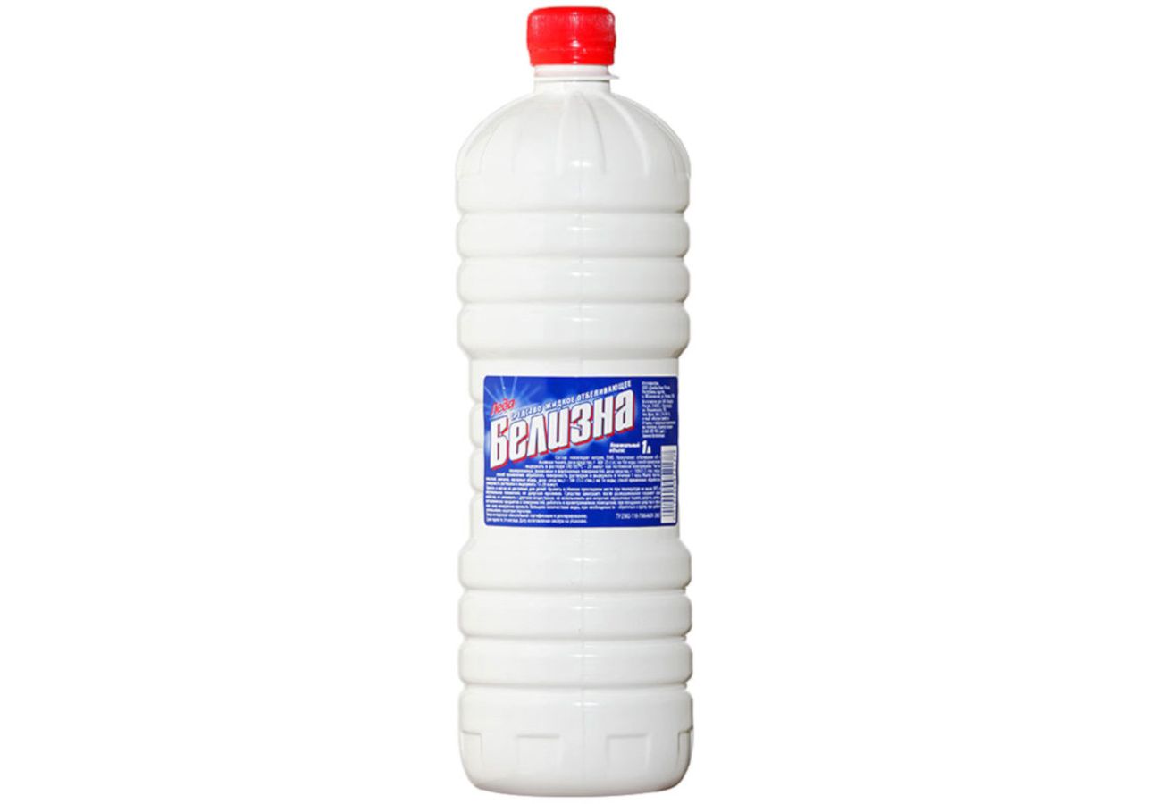 Наличие в отбеливателях хлора помогает удалить плесневелые проявления. Применимо средство для обработки белой поверхности, иначе на основании появятся пятна, которые испортят внешний вид. Не используют для деревянных материалов и гипсокартонных листов. Отбеливатель сильно пахнет, нужно надеть респиратор и защитные перчатки при работе.