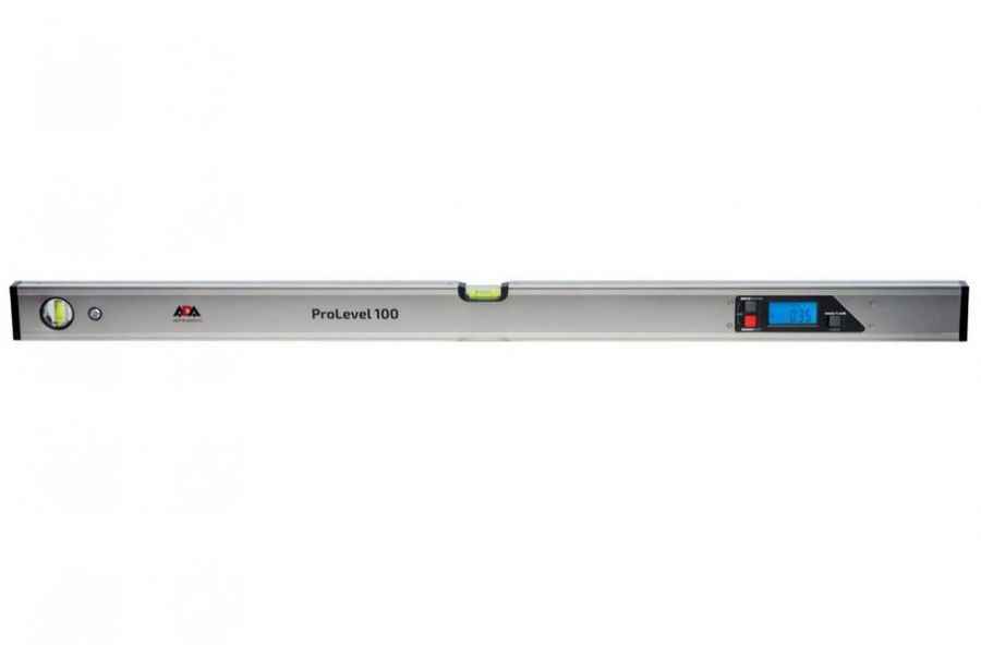 Универсальный строительный уровень для контроля уклона в трех плоскостях. В центральной части и с левого торца имеются пузырьковые капсулы, с правой стороны расположен цифровой дисплей для точных измерений по показаниям датчиков-гироскопов с автоматической калибровкой. В метровом корпусе установлены магниты для работы на металлических поверхностях.