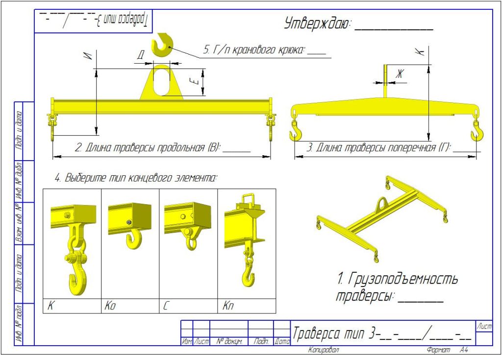 Избежать этого поможет составление технического задания, в котором будут определены предполагаемые нагрузки на траверсу, допустимая высота подъёма, количество строп и допустимый угол наклона, тип используемых захватов и креплений к тросу подъёмника и.т.д.