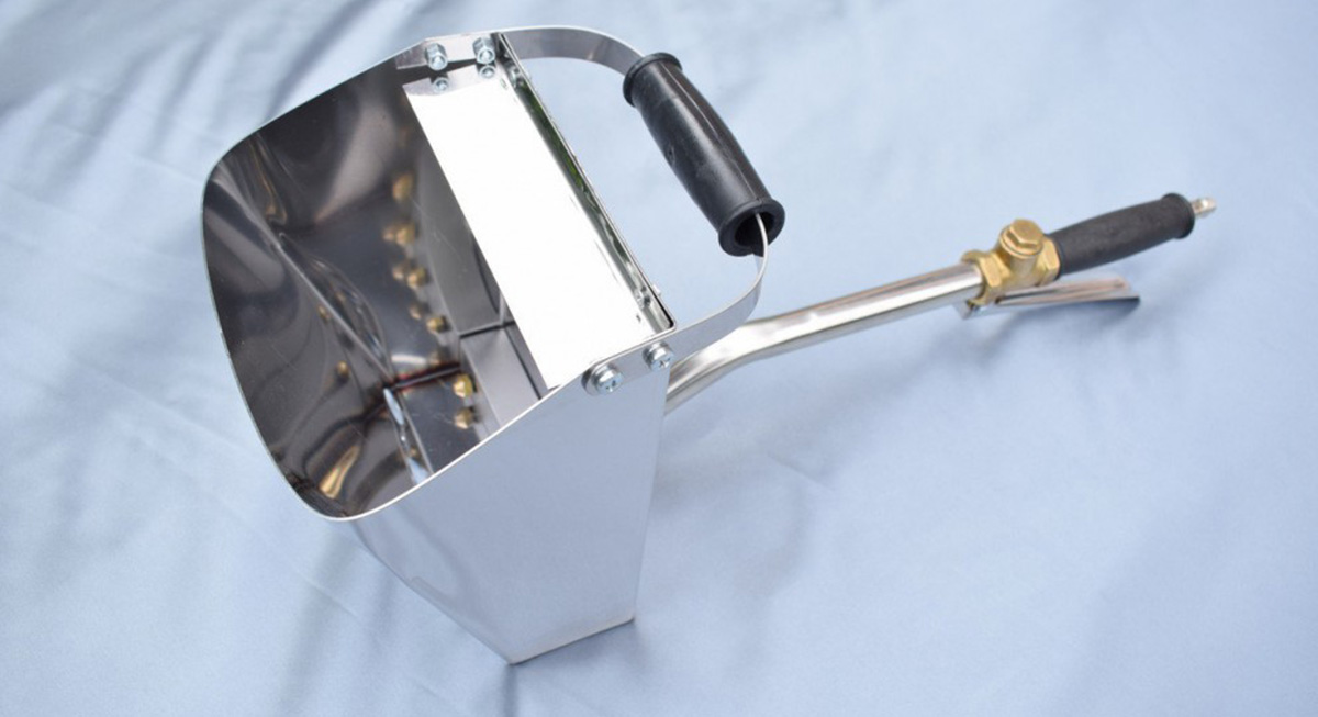 В отличие от своего «родственника», этот ковш, судя по отзывам, действительно выполнен из нержавеющей стали. С его помощью можно добиться равномерного распределения строительных смесей с минимальным слоем 5 мм. Рекомендуемое рабочее расстояние – 5-10 см.