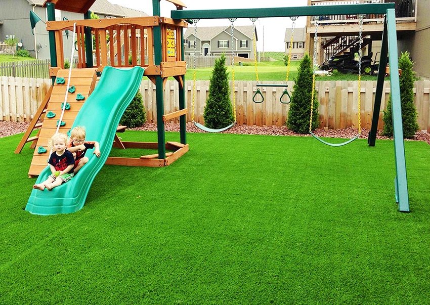 В качестве покрытия может подойти газонная трава, хорошо просеянный песок, искусственный материал на основе синтетических материалов.