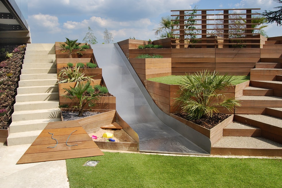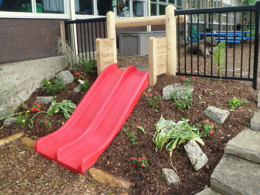 Неплохо смонтировать на детской площадке горку.