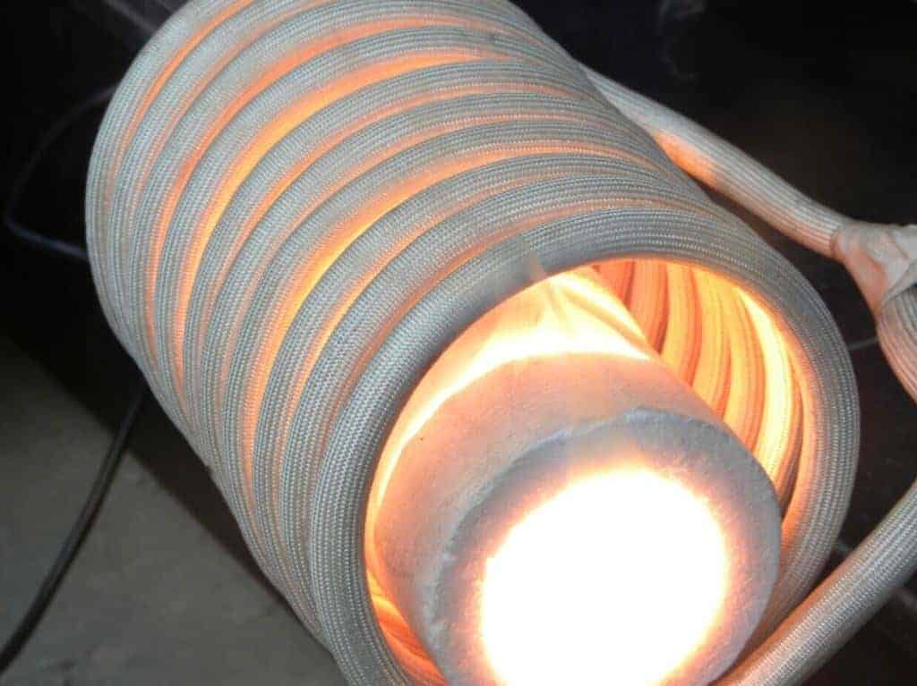 Во внутреннее пространство индуктора помещается сосуд, или емкость, в которой находится металл или руда. Под воздействием магнитного поля и вихревых токов в металле повышается сопротивление, что по всем законам физики вызывает его нагрев и за счет этого происходит процесс плавки.