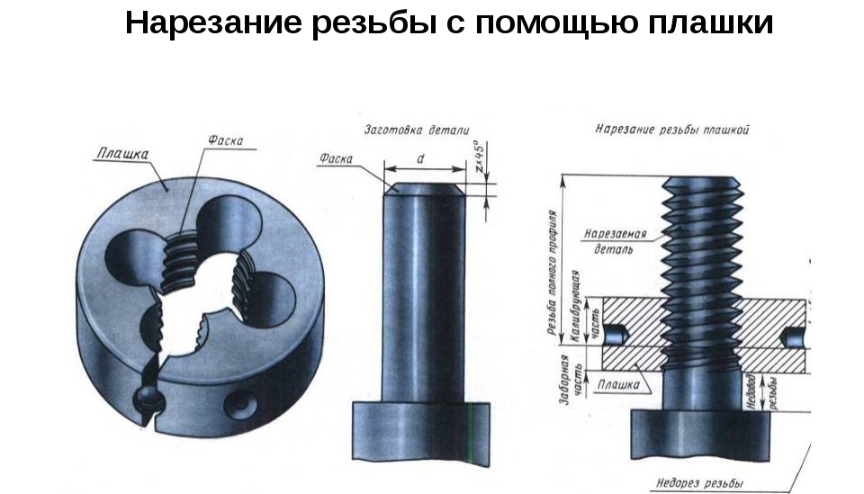 Чтобы нанести резьбу при помощи плашки и получить профиль высокой четкости, надо: