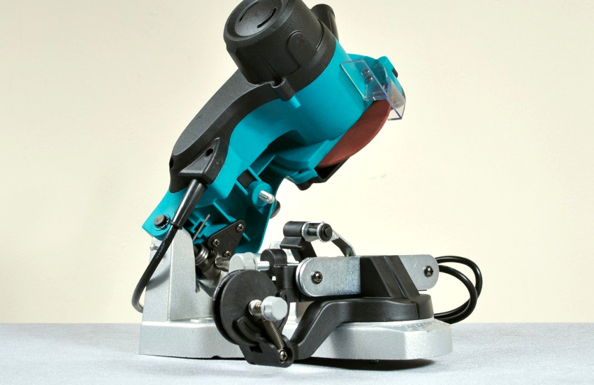 Большой популярностью (это связано с высокой производительностью и качеством заточки) пользуются станки, оснащенные электрическим приводом. Оборудование представляет собой сложную конструкцию, которая состоит из нескольких элементов. Основанием приспособления для заточки цепи бензопилы выступает станина, на которой устанавливаются двигатель и тиски с направляющими салазок для цепи. Двигатель применяется асинхронного типа с прямой передачей и высокой частотой вращения.