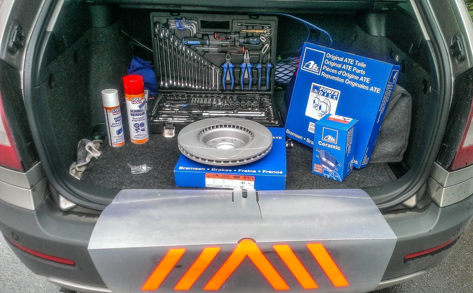 Машину установить на яму или на подготовленной ровной площадке. Заранее определиться, нужна ли замена задних тормозных дисков или меняются только передние. От этого зависит, каким образом поднимать машину домкратом. Приподнимать весь борт или только передние колеса.