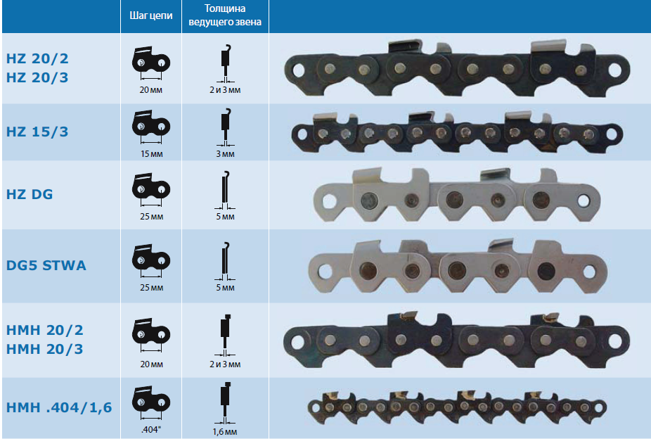 - 0,063” или 1,6 мм. Цепи с такой толщиной хвостика являются более прочными и ставятся только на инструмент для профессионалов.