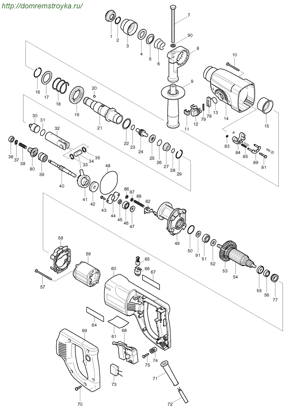 Для удобства ремонта ниже приведена схема сборки и каталог частей перфораторов Макита.