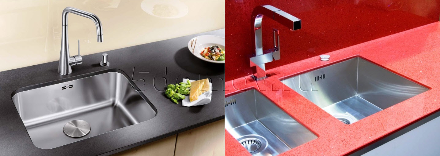 Производят данные изделия из нержавеющей стали. На сегодняшний день и те, и другие пользуются наибольшей популярностью. Внешне врезные варианты могут выглядеть по-разному. Часто встречаются изделия из нержавейки с гладкой фактурой и имитирующей лен текстурой.