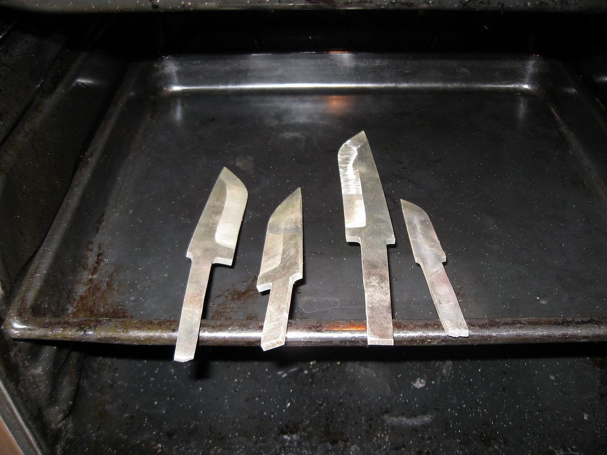 Последняя операция термообработки называется отпуск. Отпуск необходим для уменьшения хрупкости закаленной стали и снятия внутренних напряжений в металле, появившихся в процессе закалки. Отпуск я делаю в обычной духовке.