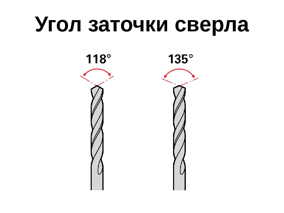 Углы при вершине могут изменяться по величине в зависимости от задач сверления и обрабатываемых материалов. Но они всегда должны быть равны с обеих сторон и расположены максимально симметрично.