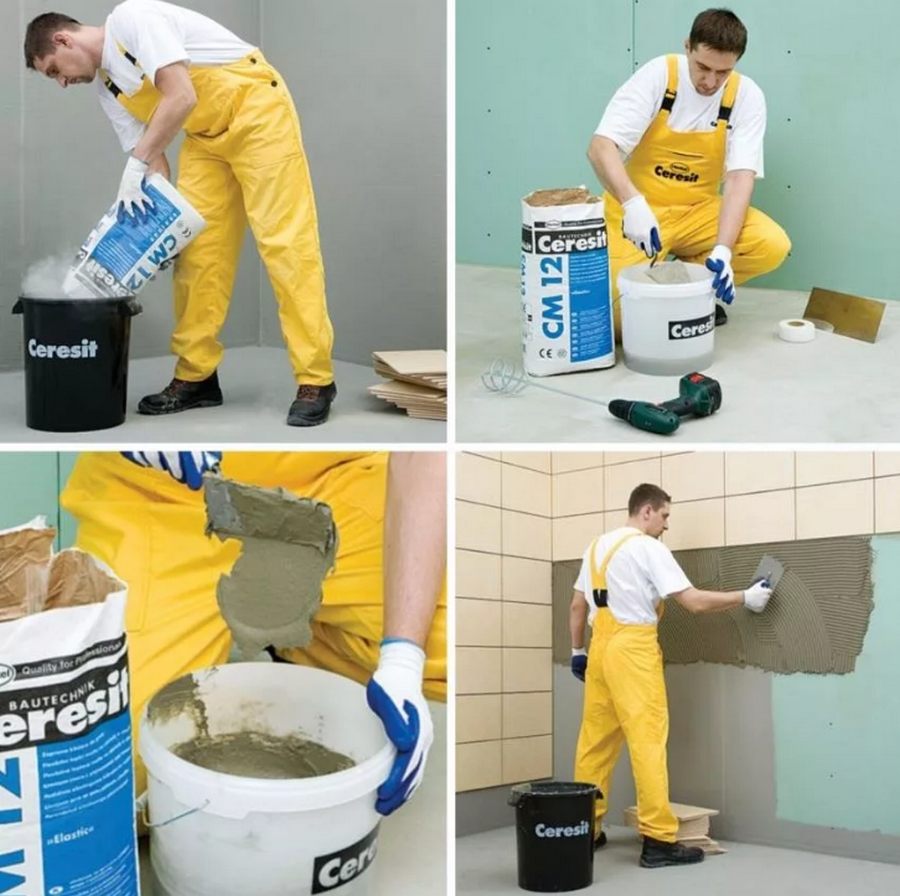 Отличным решением при поклейке плитки является применение клея от компании Ceresit