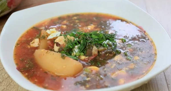 Из-за отсутствия в этом борще свеклы он получил название «Зеленый», хотя по сути это даже не борщ, ведь он больше похож на летный суп с добавлением вареных яиц и щавеля. Это первое блюдо полезное и ароматное, а еще оно простое в приготовлении. Жаль только, что щавель растет у нас некруглогодично. Кстати, если у вас на даче растет щавель, запаситесь им на зиму: нарежьте и сложите в морозилку в пакетиках.