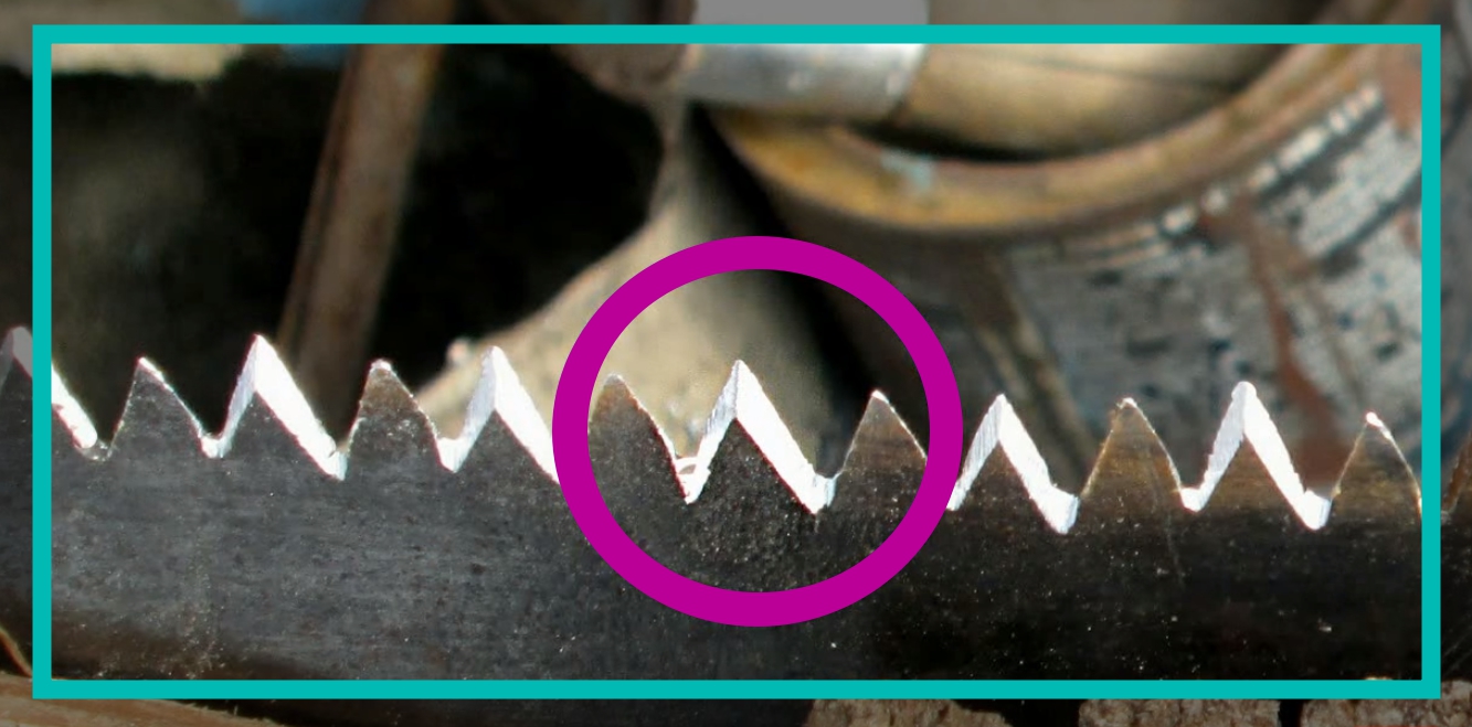 Все режущие выступы должны быть одинакового размера, чтобы производительность пиления не ухудшалась. Более длинные зубья испытывают большие нагрузки и быстрее стираются, в то время как короткие даже не касаются древесины.