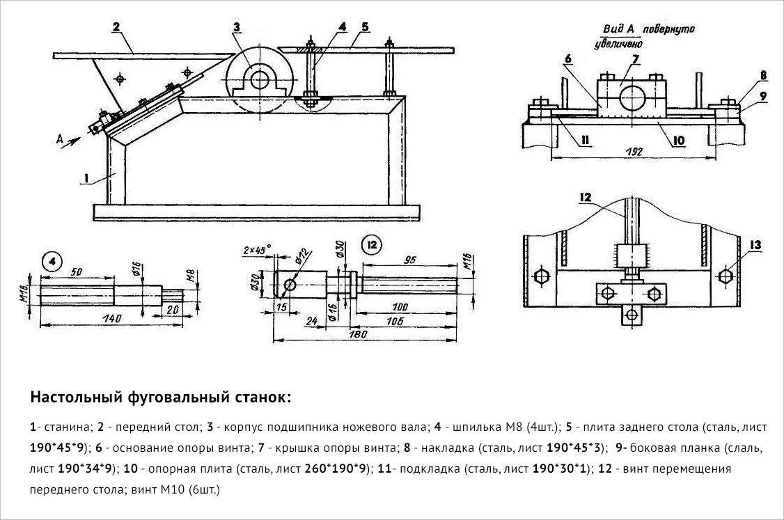 Настольный фуговальный станок — чертеж