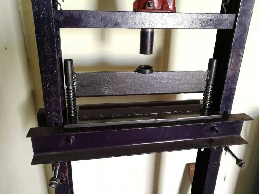 Вариант исполнения самодельного листогибочного пресса, работающего в паре со сделанным своими руками гидропрессом. Если у вас уже есть пресс, то дополнить его приспособлениями для сгибания нешироких листов металла не составит труда. Получится нечто такое: