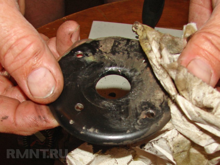 Снимаем диск фиксации якоря и протираем его от пыли и смазки ветошью.