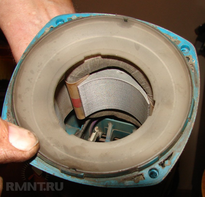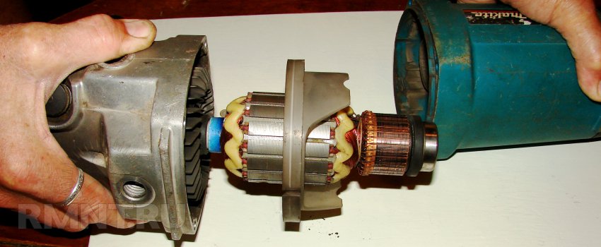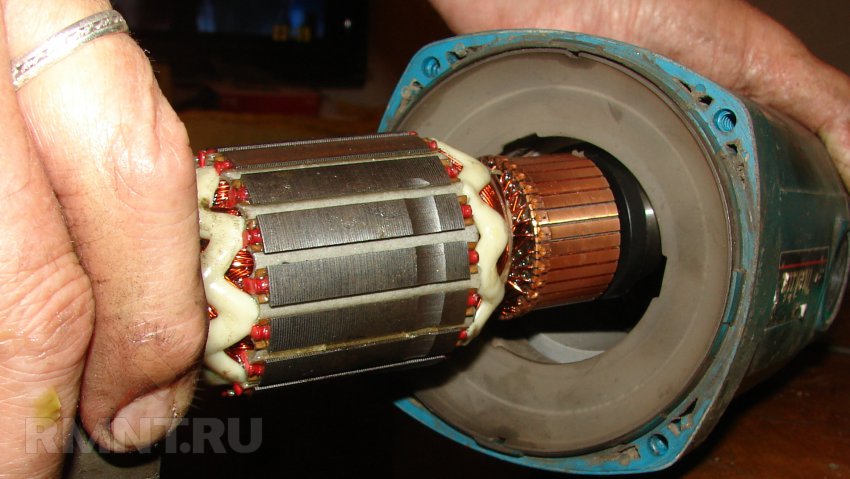 Ротор болгарки за время интенсивной эксплуатации подвержен воздействию абразивных частиц, которые проникают внутрь через вентиляционные каналы. Электрическая изоляция обмоток уничтожается под ударами, особенно сильно, металлического абразива. Проволока обмоток также уменьшается в диаметре. В конечном итоге это приводит к обрыву или межвитковому замыканию проволок внутри катушек.