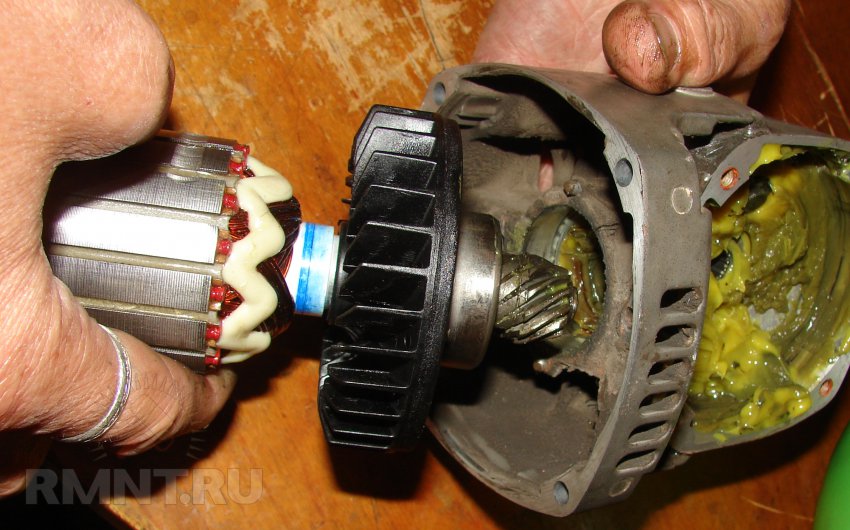 Вытащив ротор совместно с редуктором, приступайте к разборке редуктора.