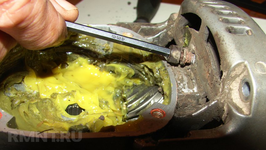 Выкручиваем 4 винта крепления редуктора к корпусу.